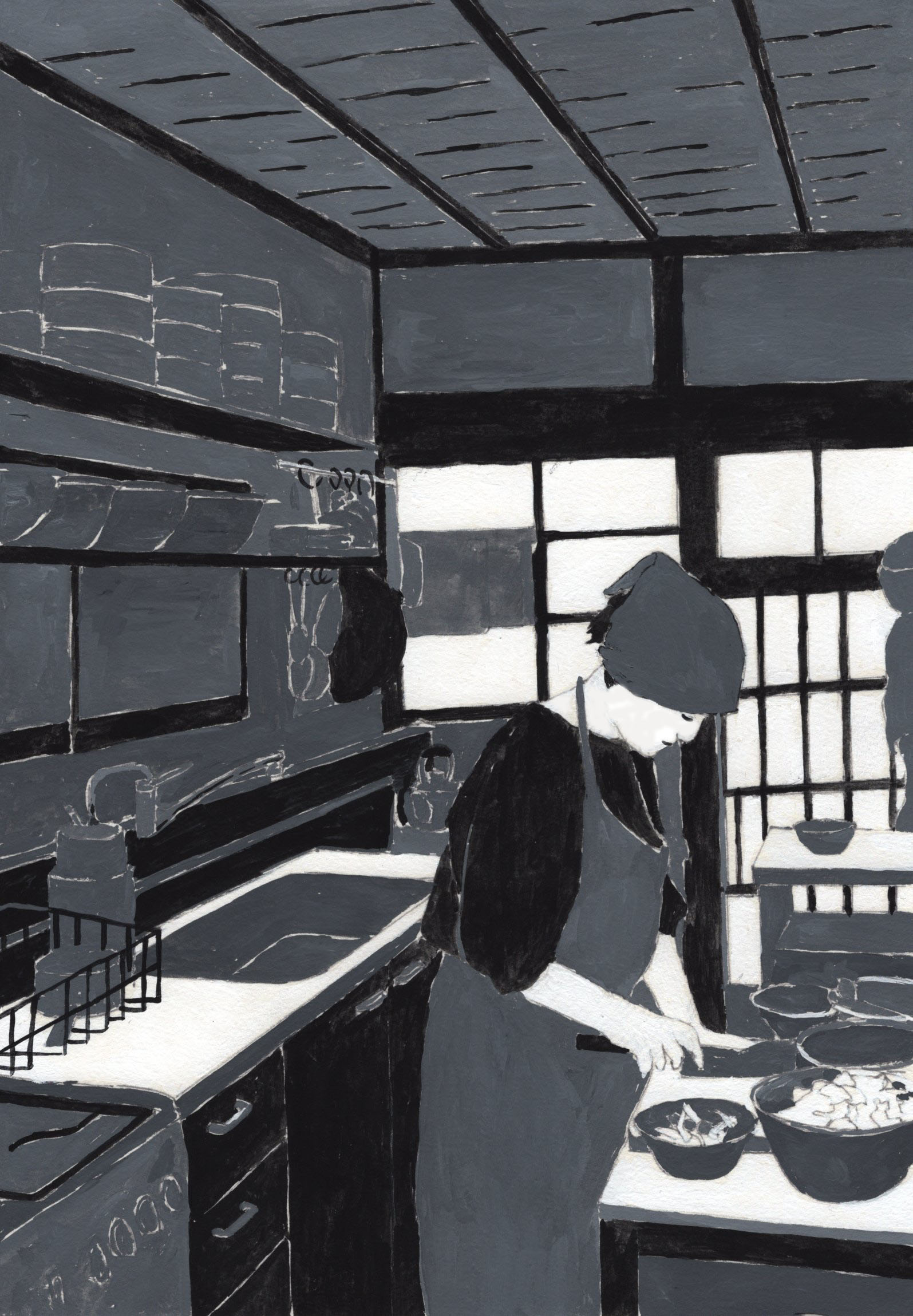 以前、青山塾で白黒の課題で描きました。